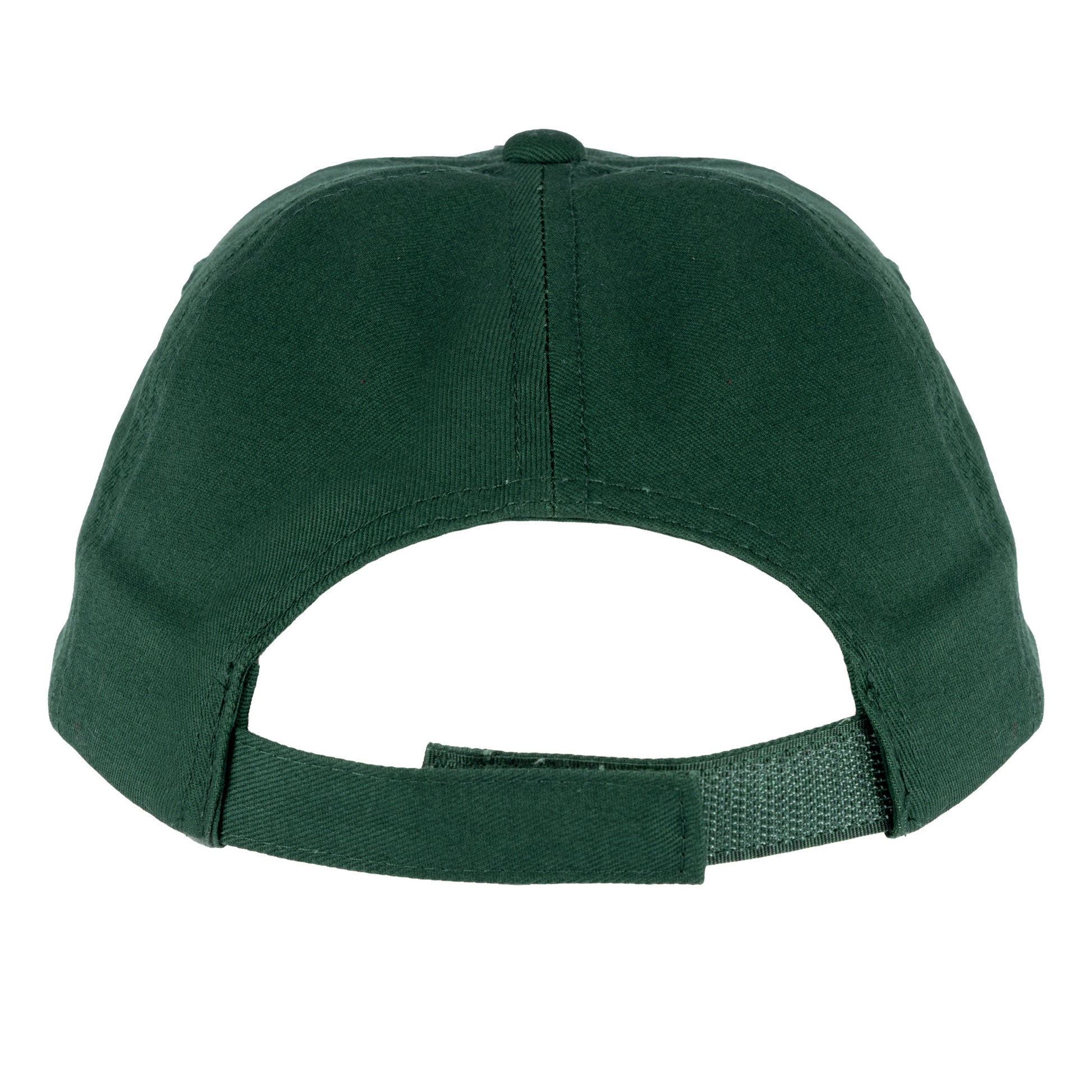 Bottle green 5 panel with a pre-curved peak. 100% cotton twill. Comes in one size for unisex kids only.